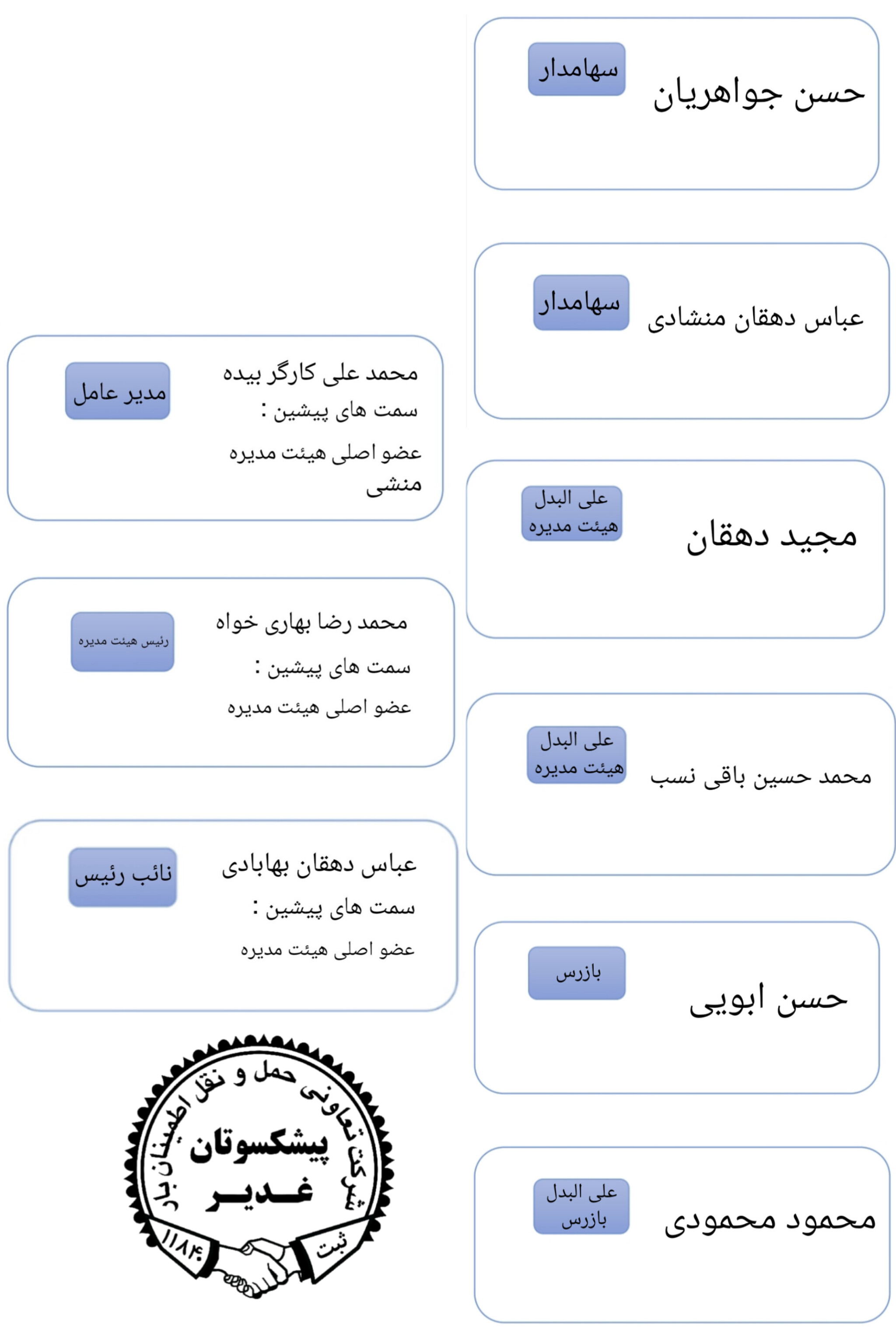 اعضاءهیئت مدیره شرکت اطمینان بار پیشکسوتان غدیر
